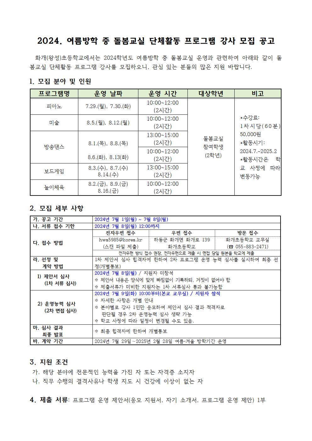 2024 여름,겨울방학 돌봄교실 단체프로그램 강사 모집 계획.hwp