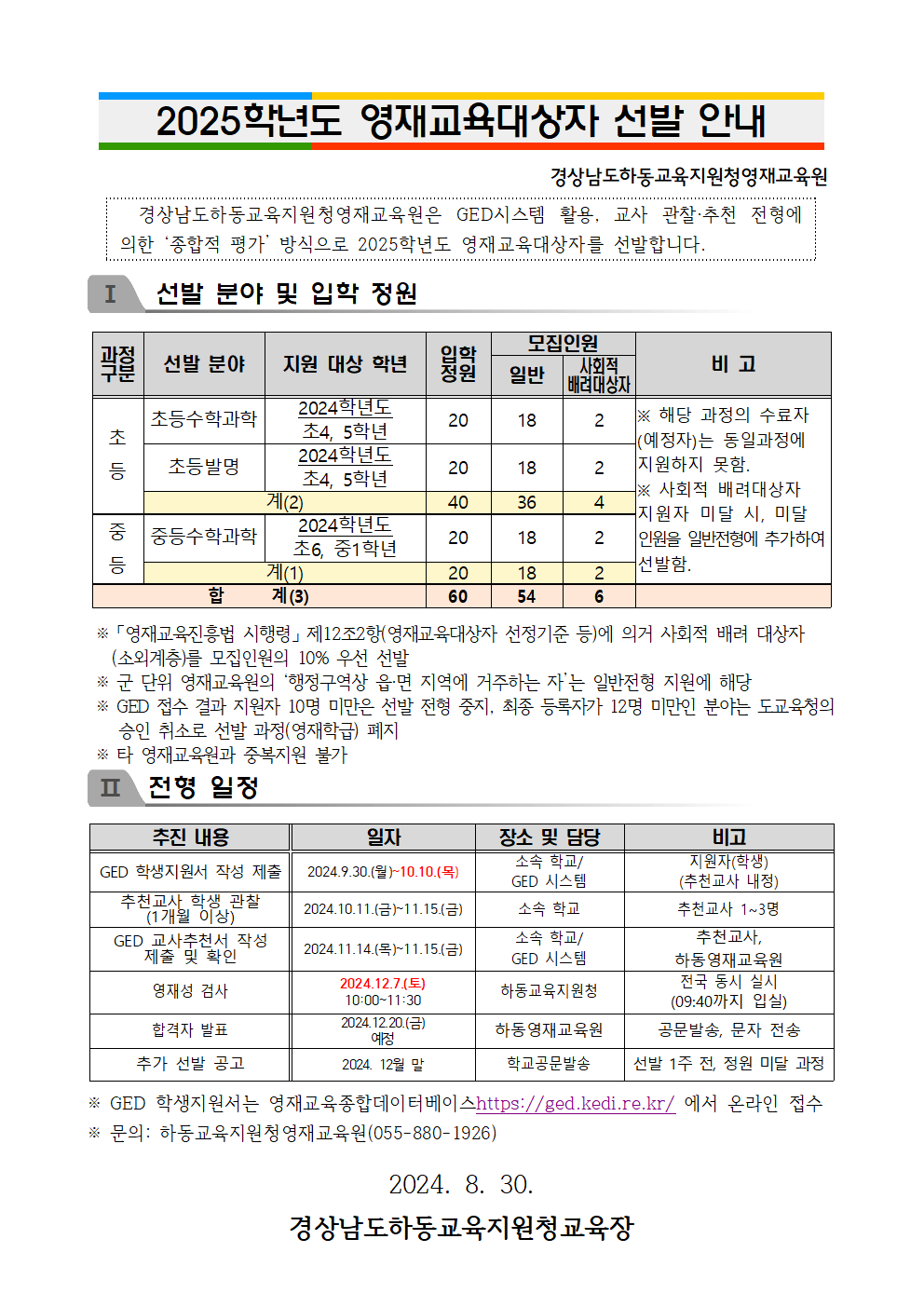[2025학년도 영재교육대상자 선발 안내]